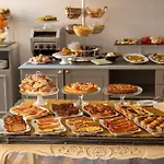 O café da manhã adequado com uma grande variedade de opções, é um lugar muito charmoso e muito limpo.